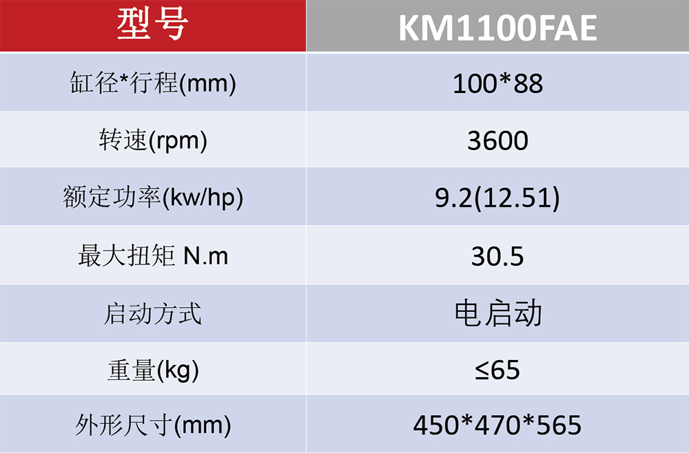 型号:KM1100FAE 功率:9.2KW/ 12.51HP 排量:0.691L