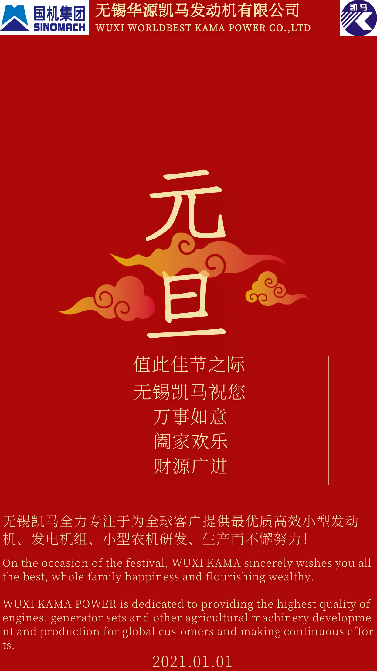 无锡华源凯马发动机有限公司祝大家元旦快乐!