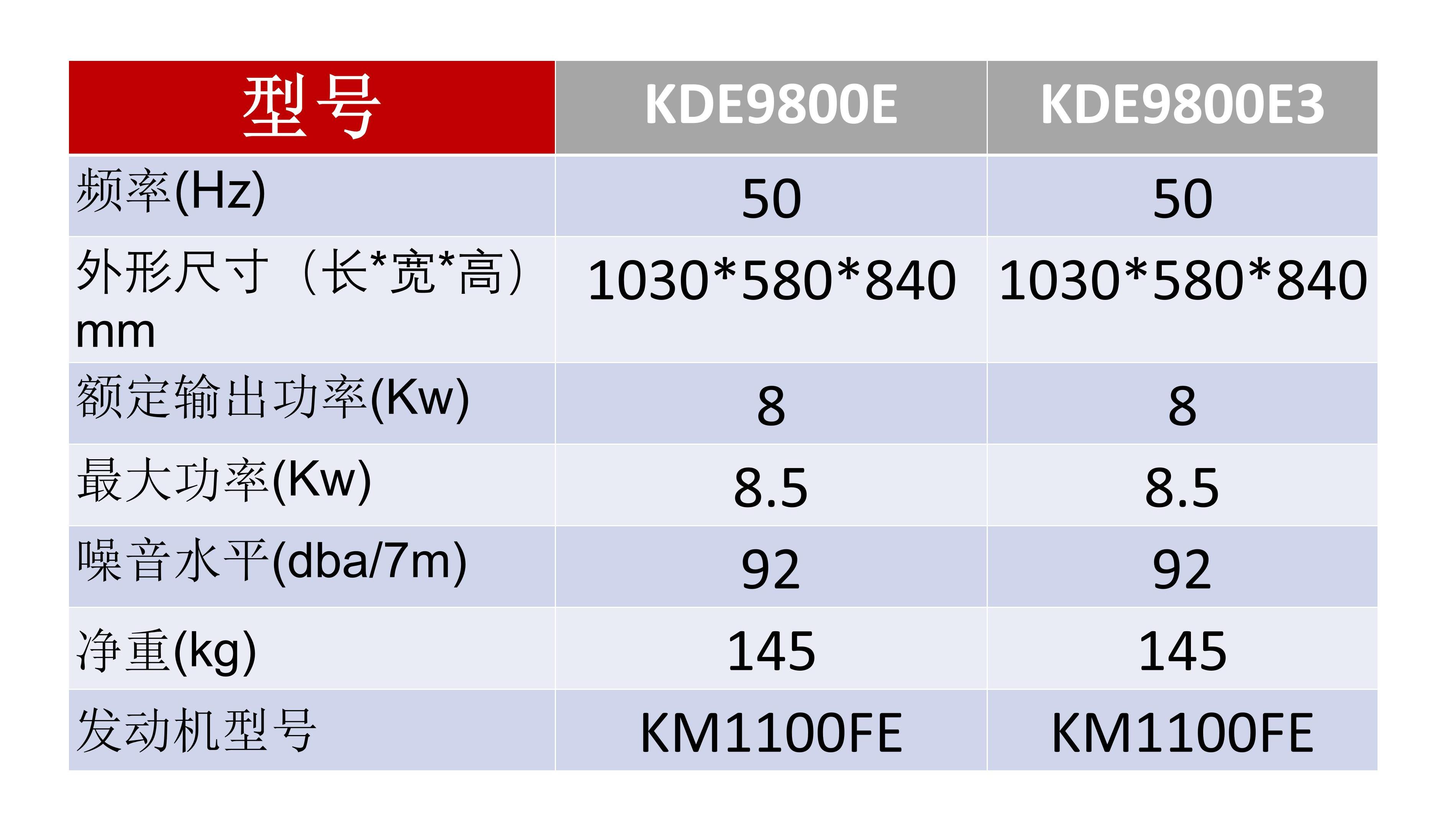 型号:KDE9800E 功率:8KW 发动机型号:KM1100FE